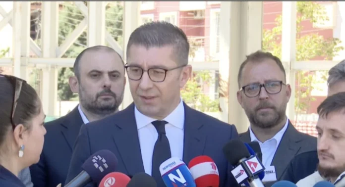 Macedonian Prime Minister Hristijan Mickoski was asked by reporters to share his opinion on the appeal decision in the “April 27” case during his visit to the reconstruction of the Universal Hall on Monday.